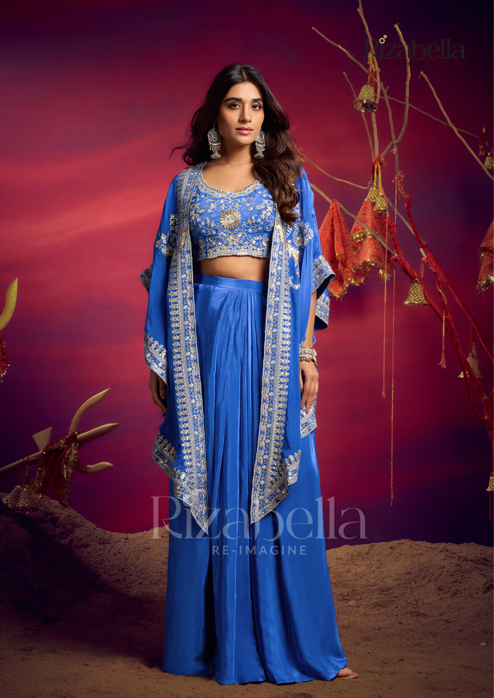 Embroidered Cape Palazzo Three-Piece Set