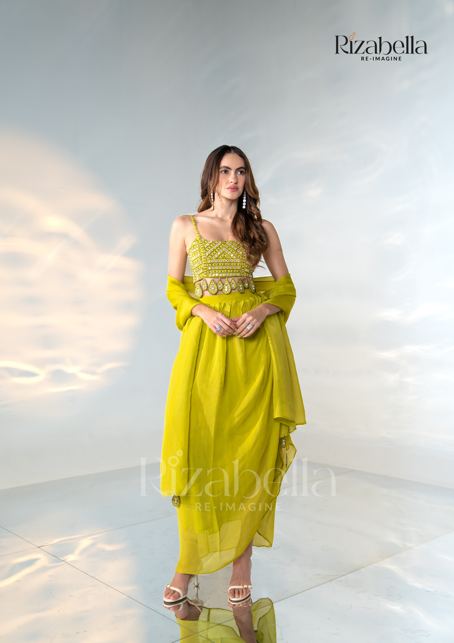 Olive green embellished sleeves shrug set