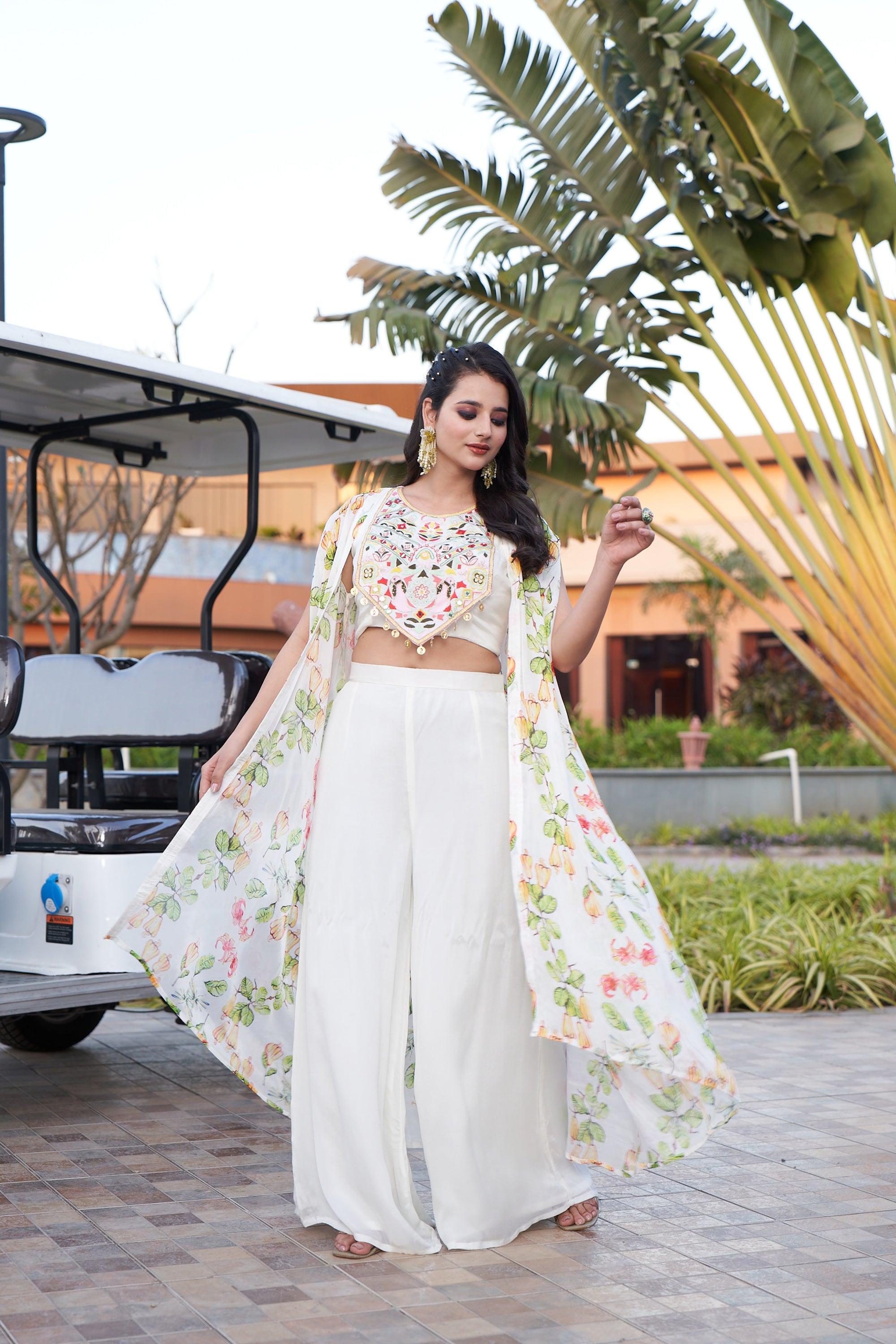 Floral Cape and Mirror Blouse - Off-White