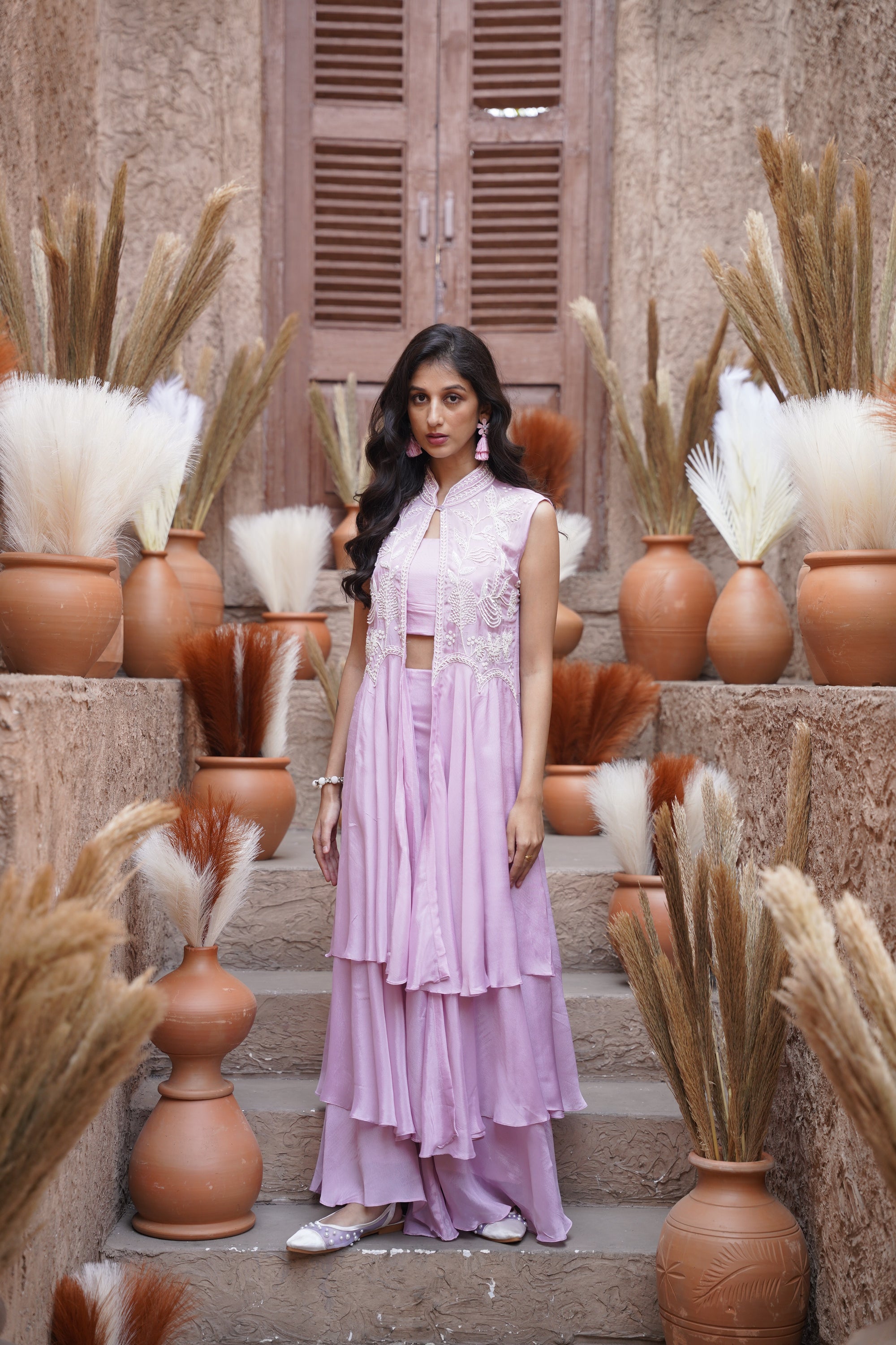 Lilac Floral Beaded Long Jacket Set