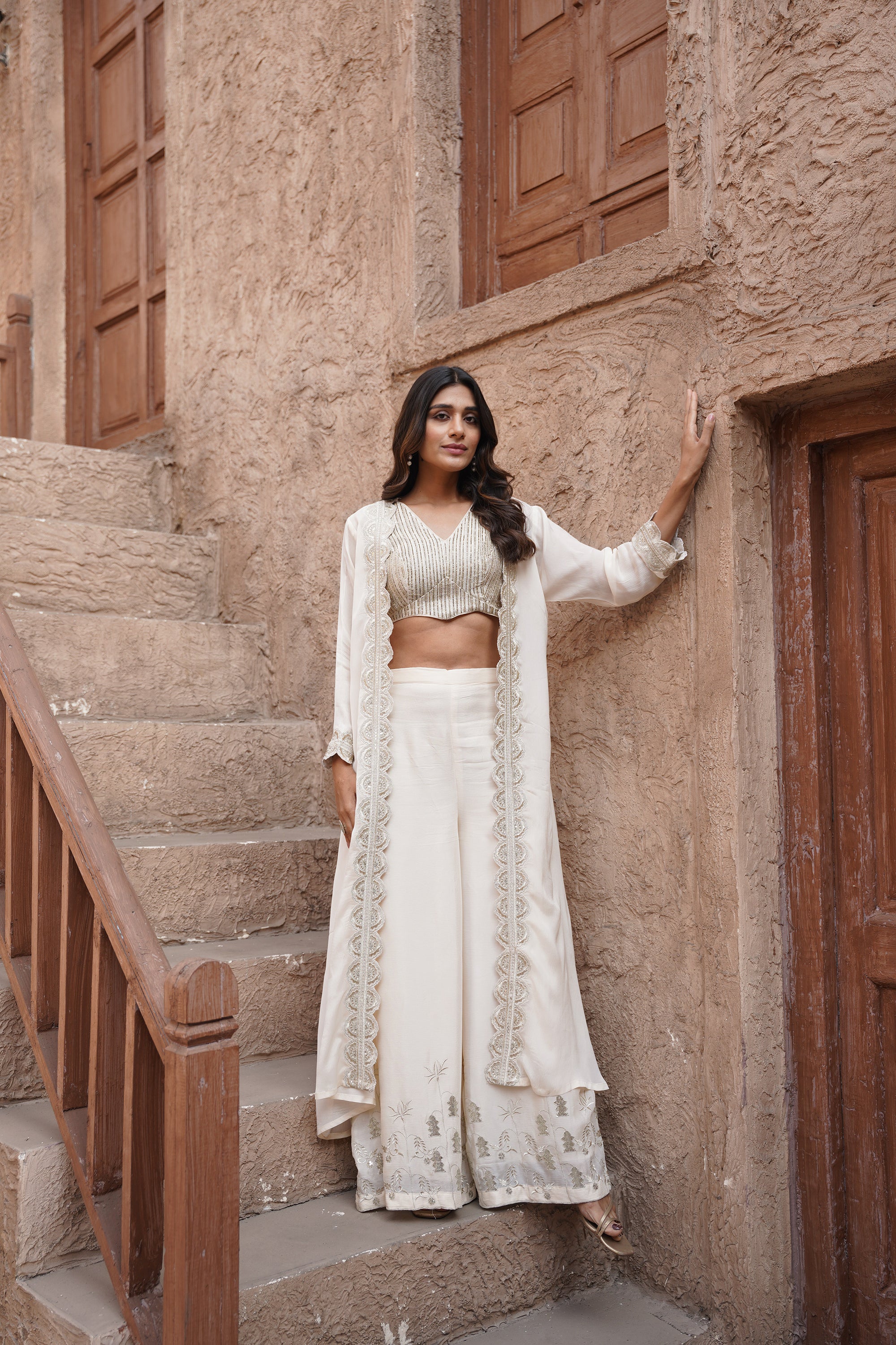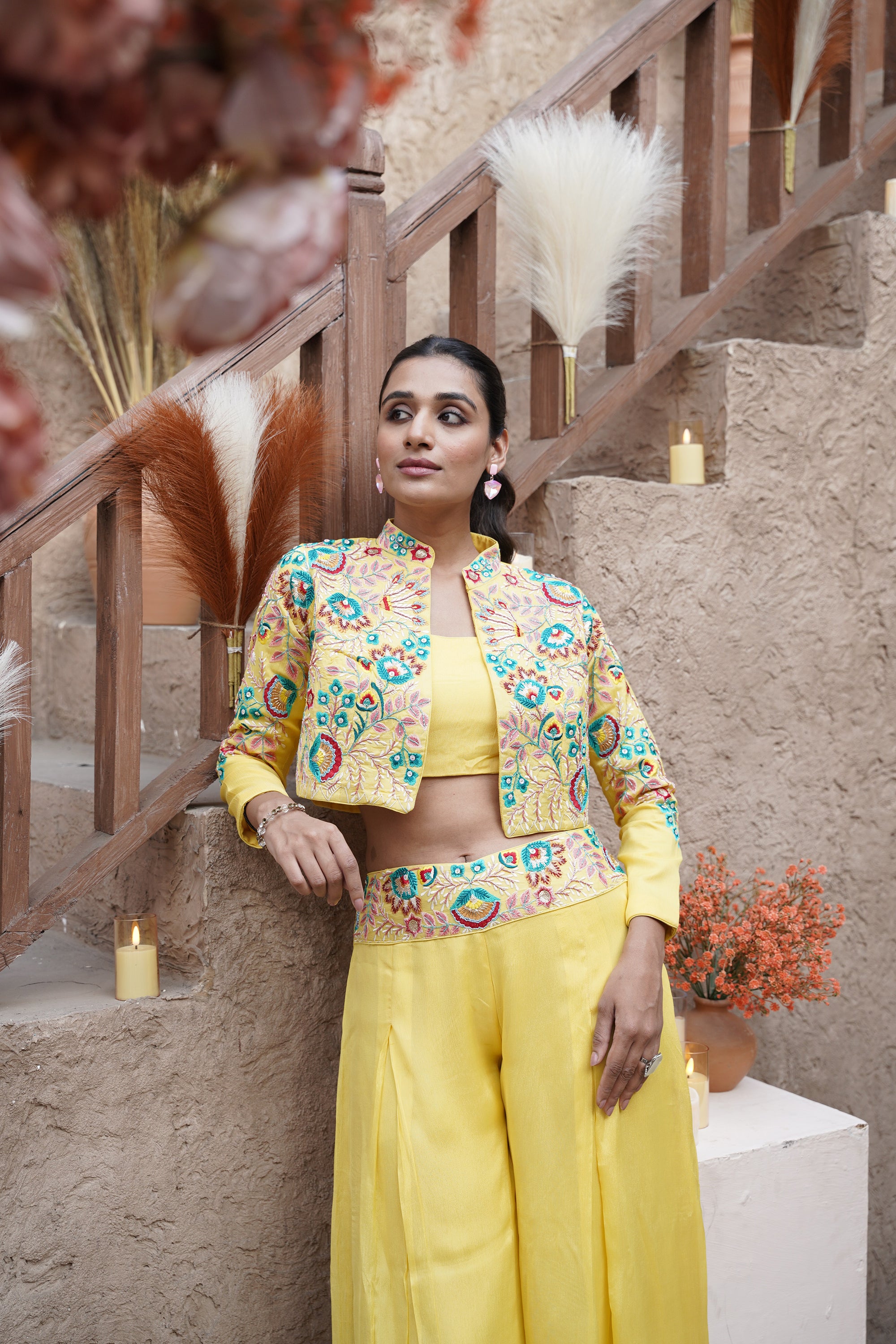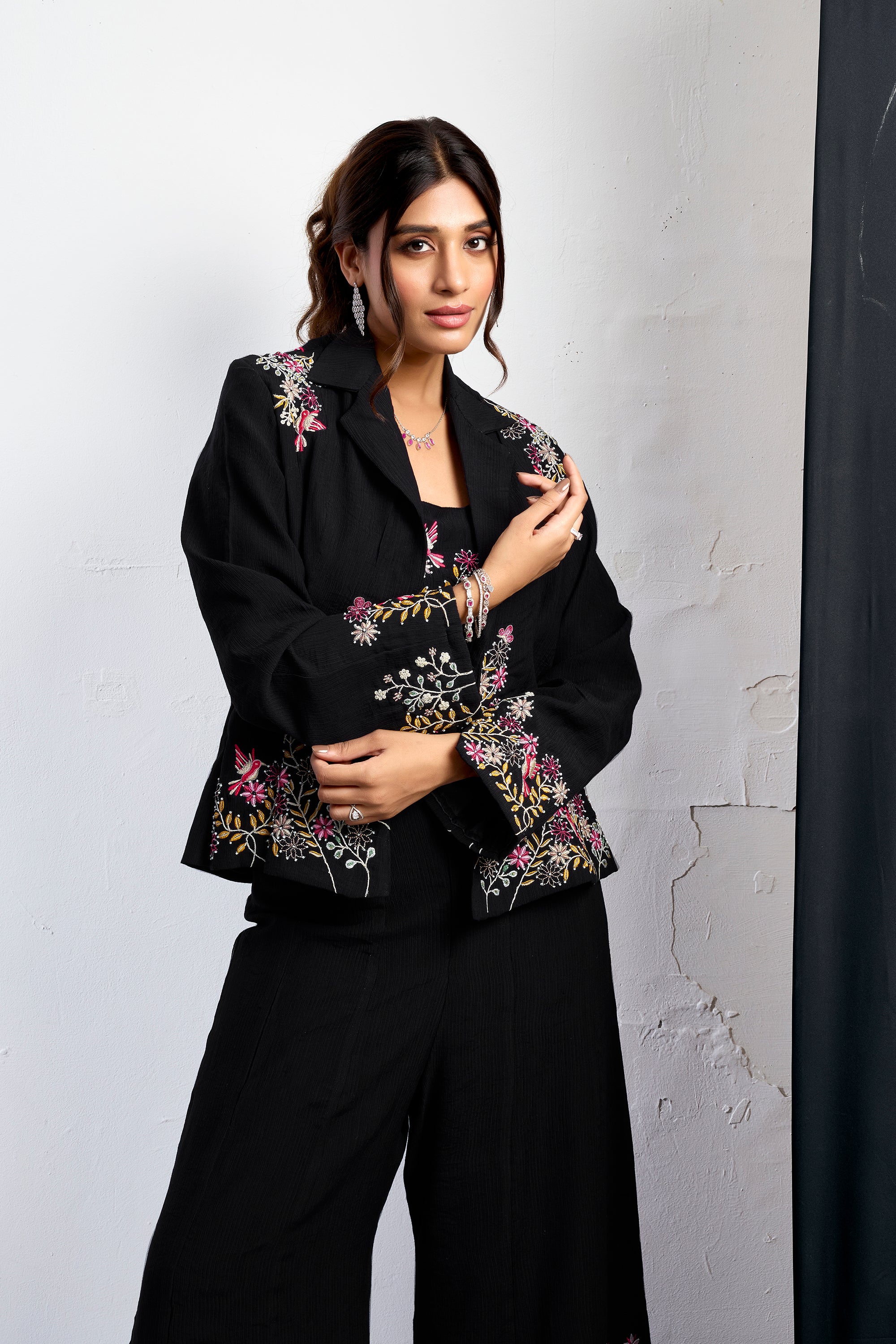 Embroidered jacket- palazzo three-piece