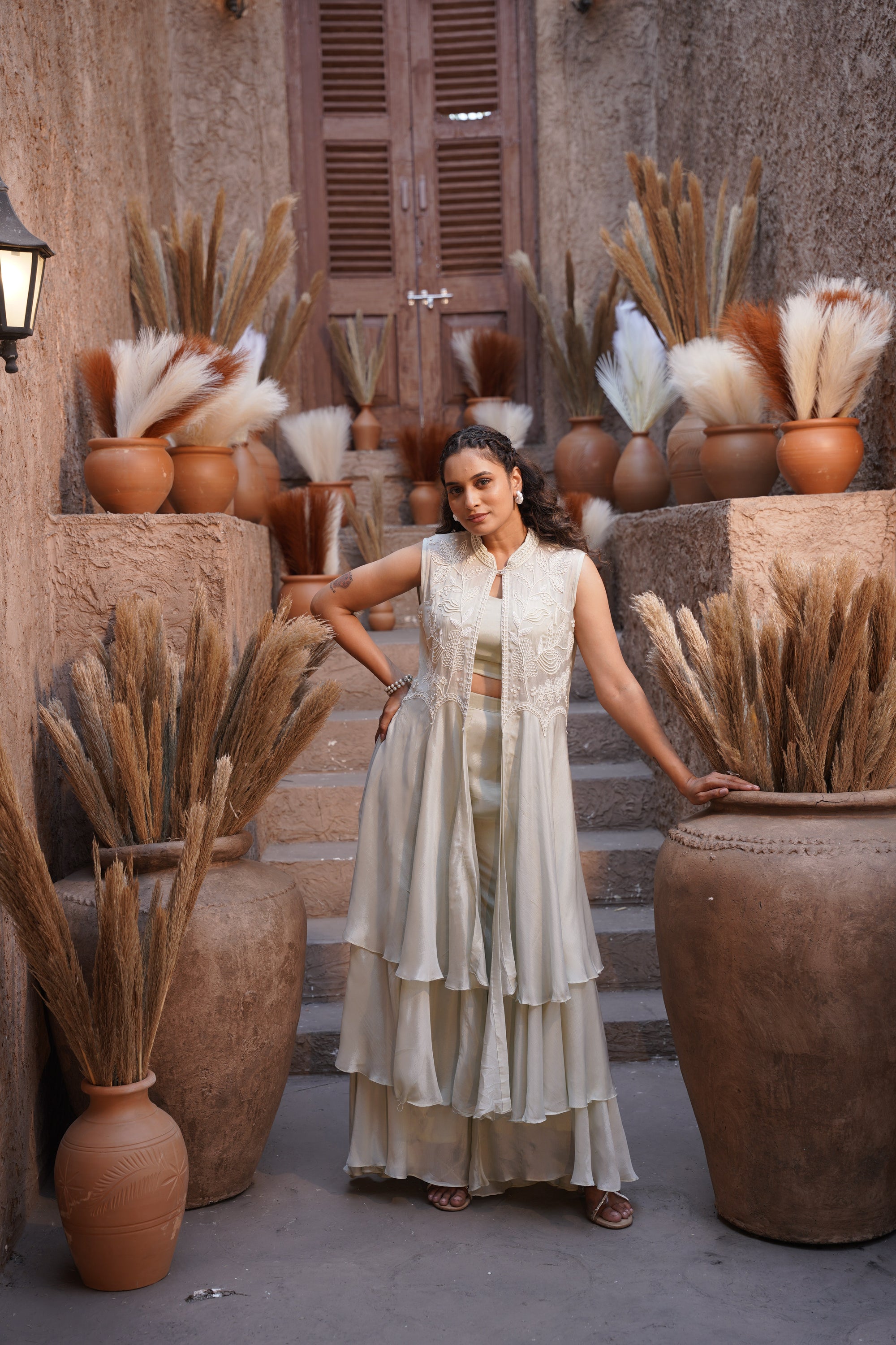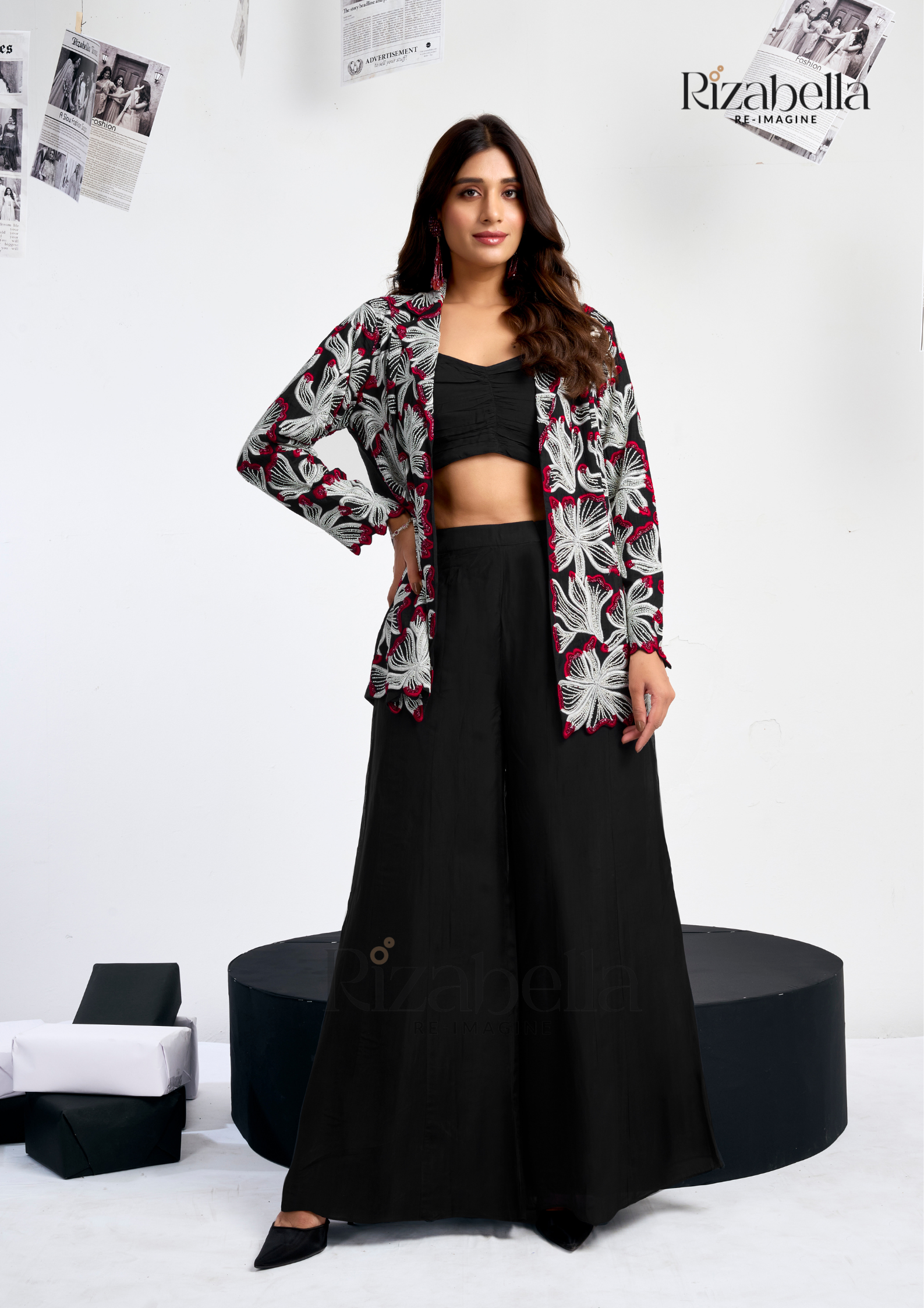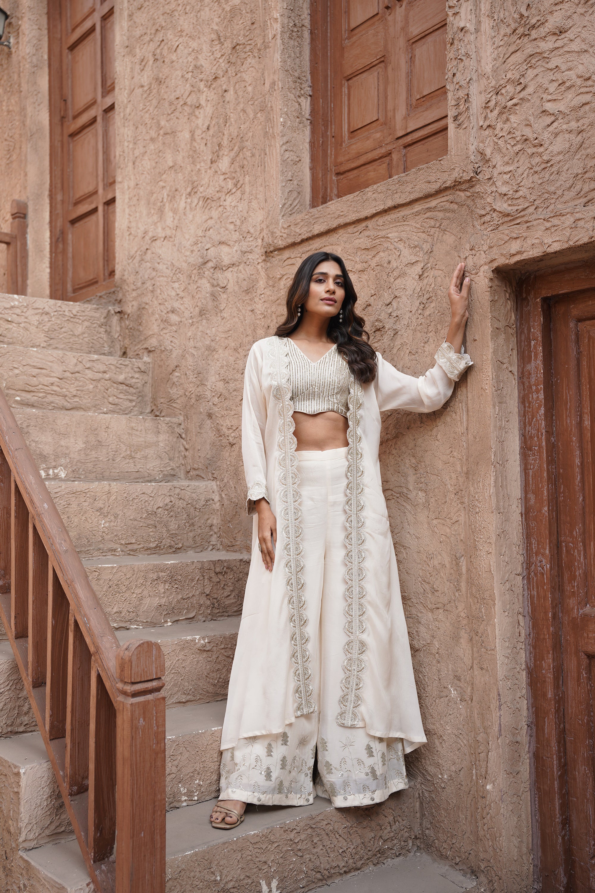 Embroidered jacket- palazzo three-piece