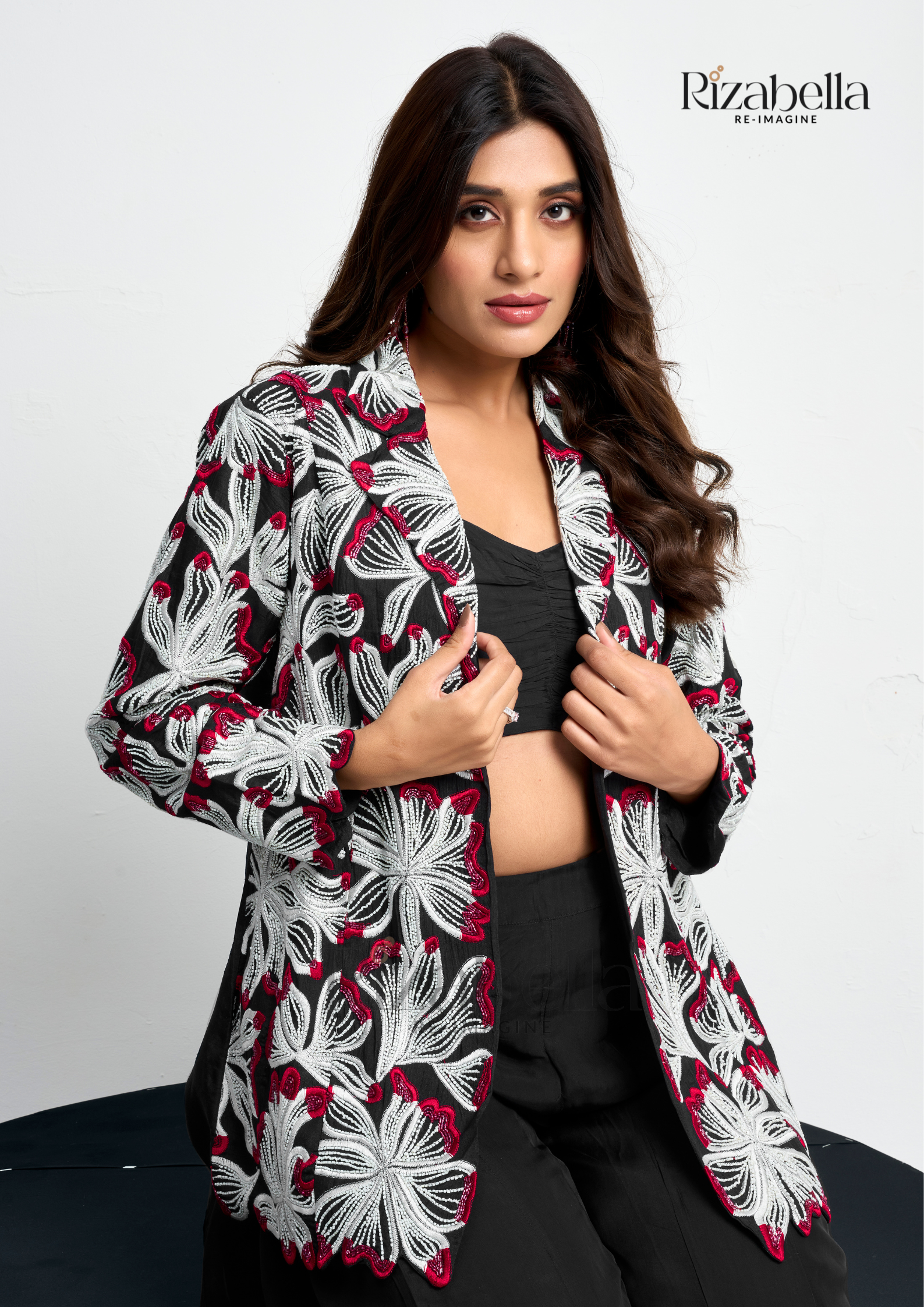 Embroidered jacket set - Black