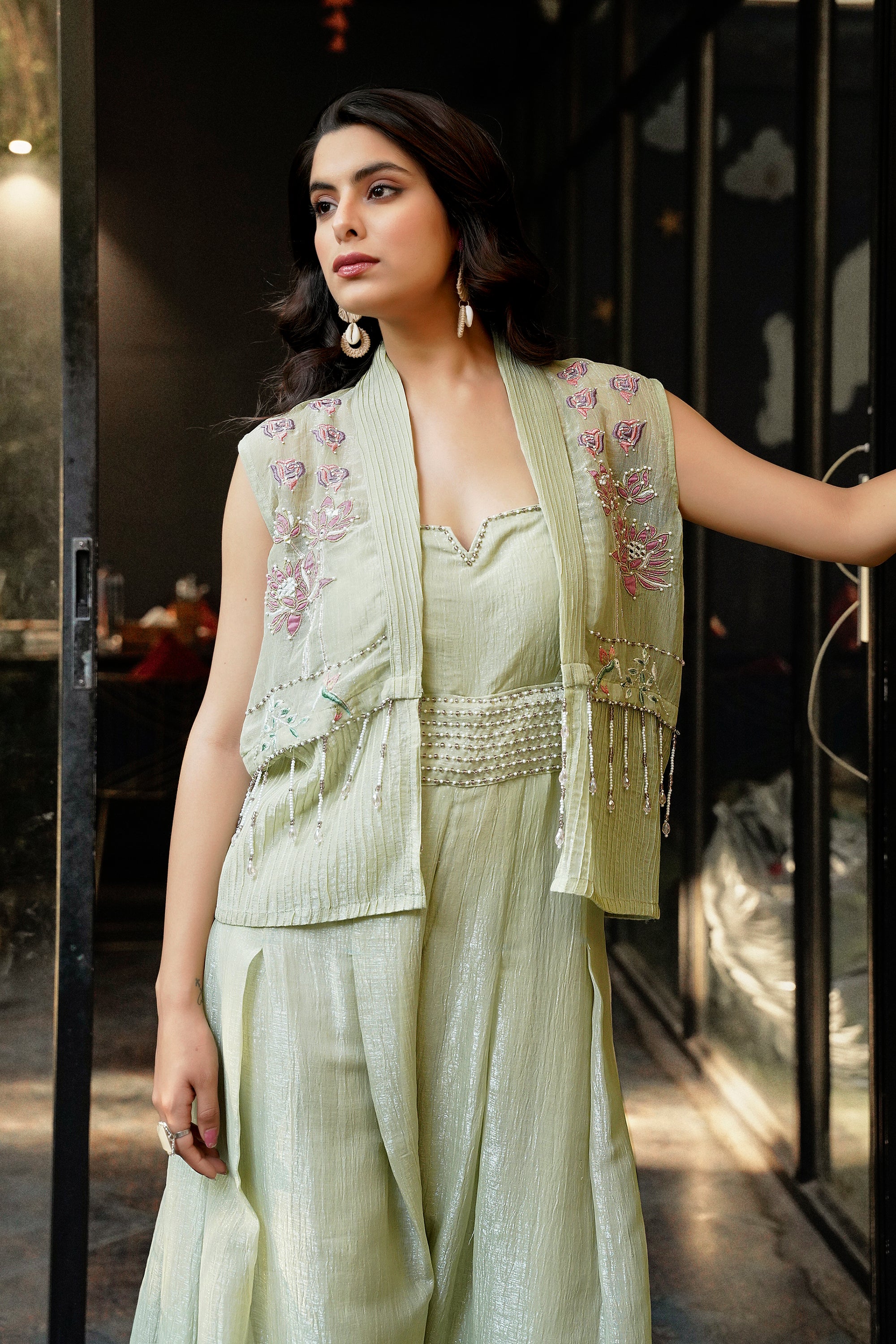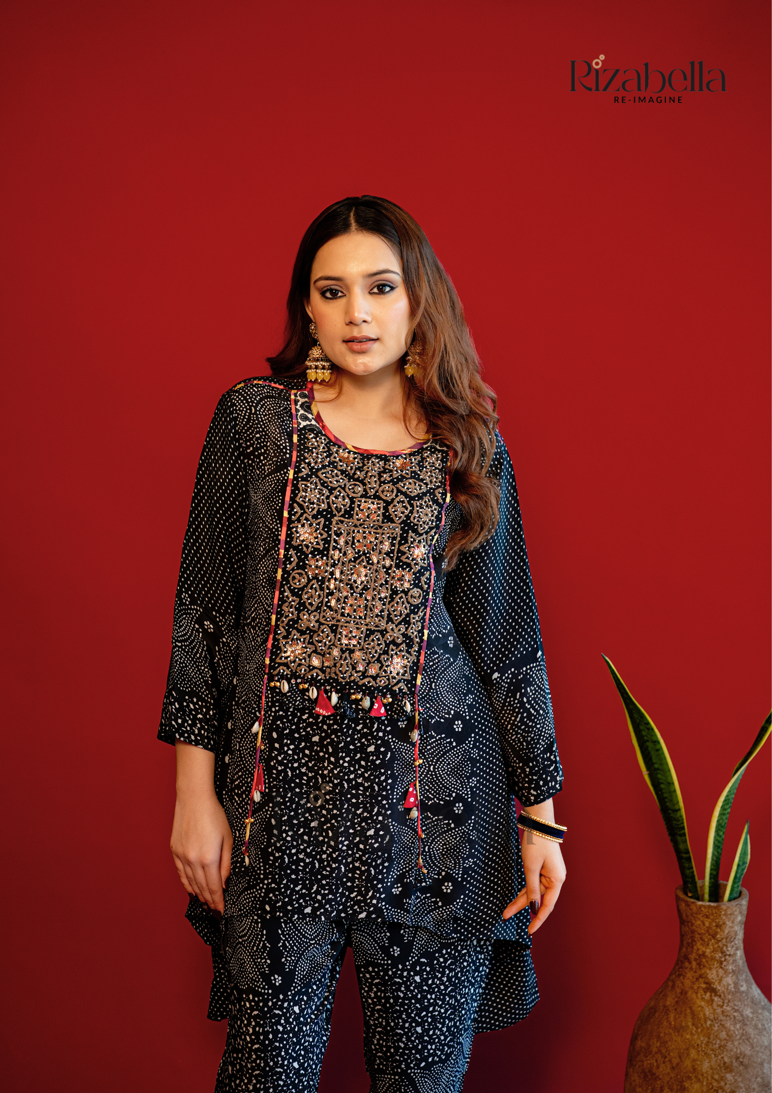 Embroidered Kaftan Pant Set - Black