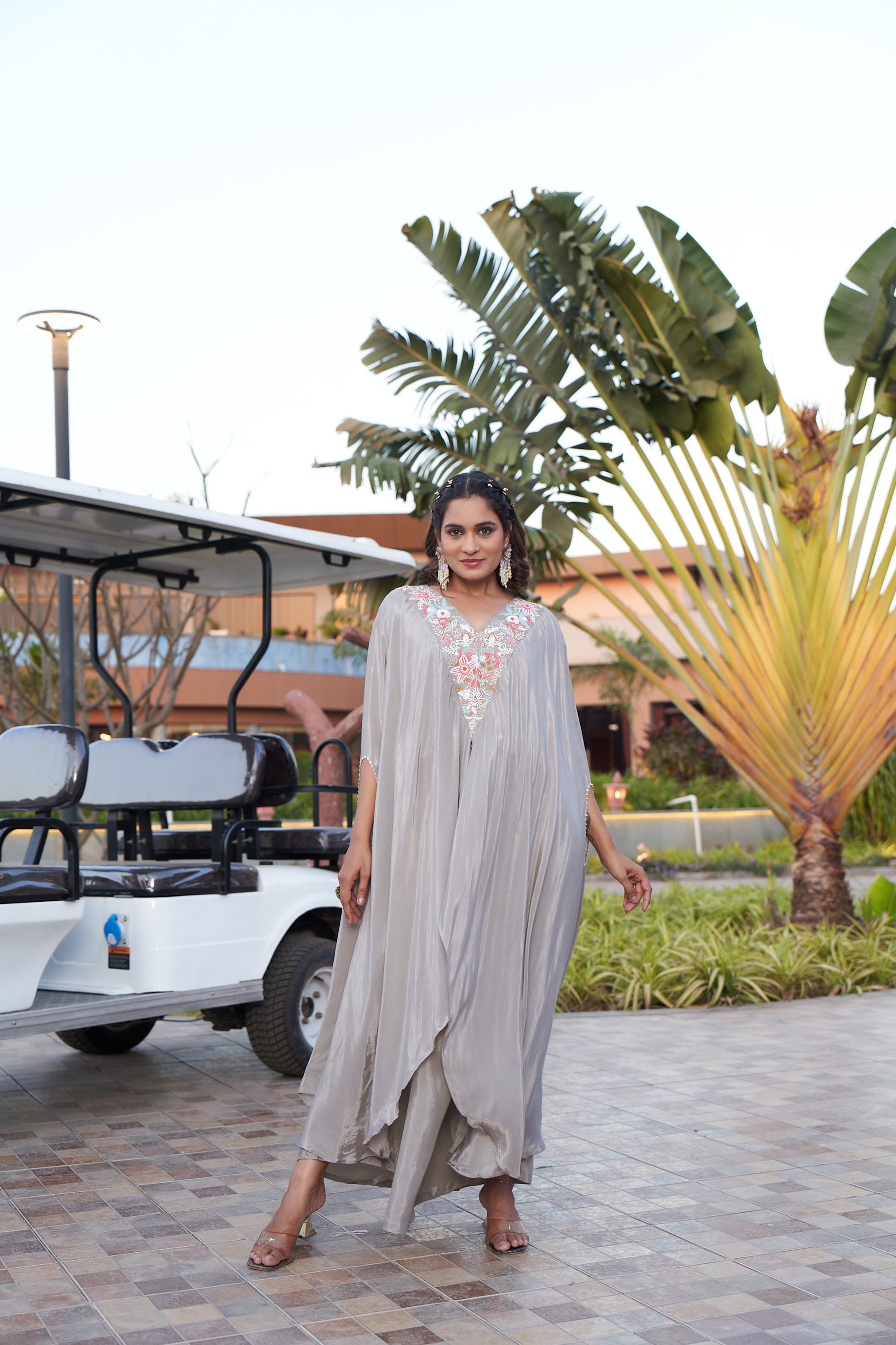 Embroidered Silver Kaftan - Silver-grey