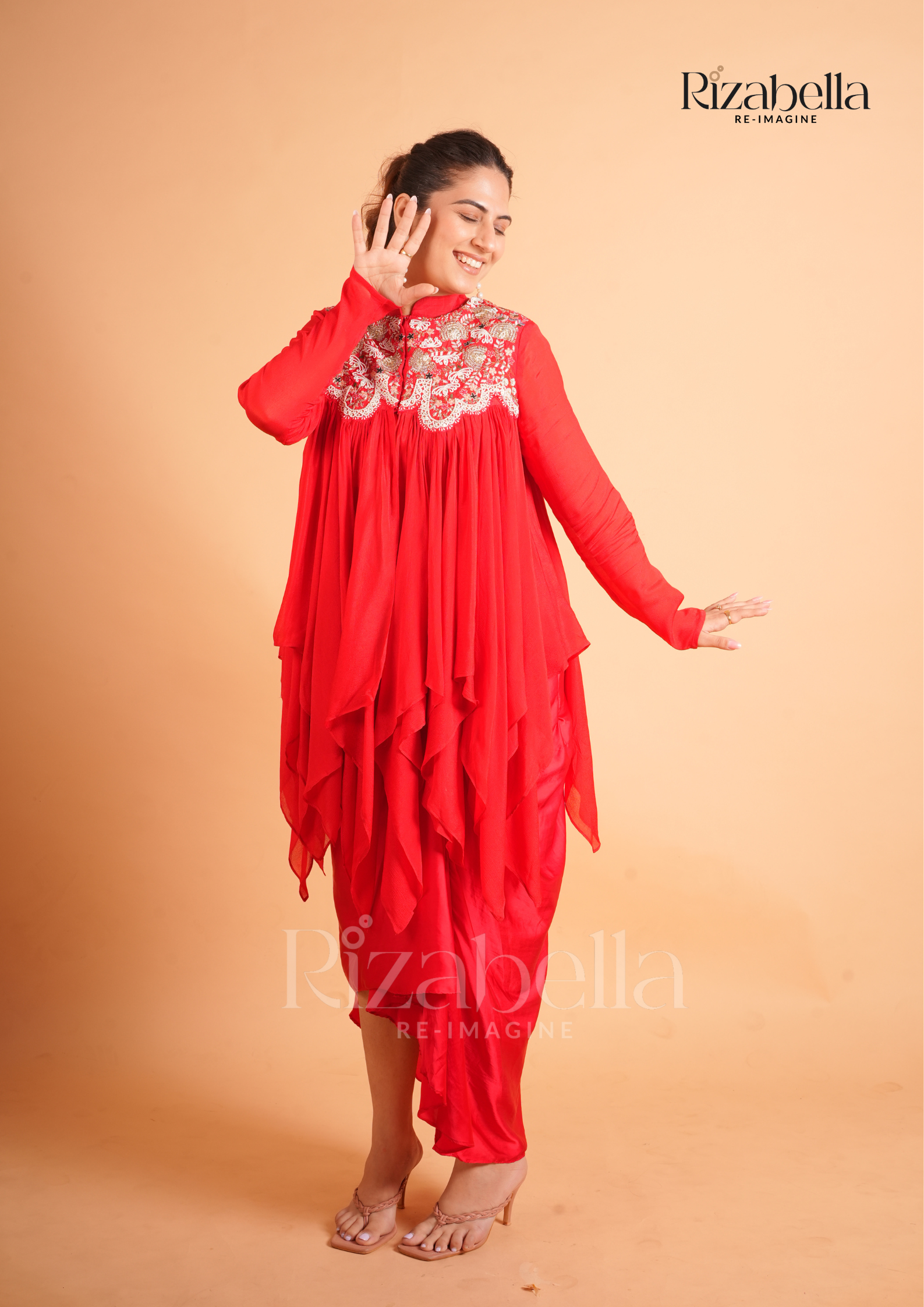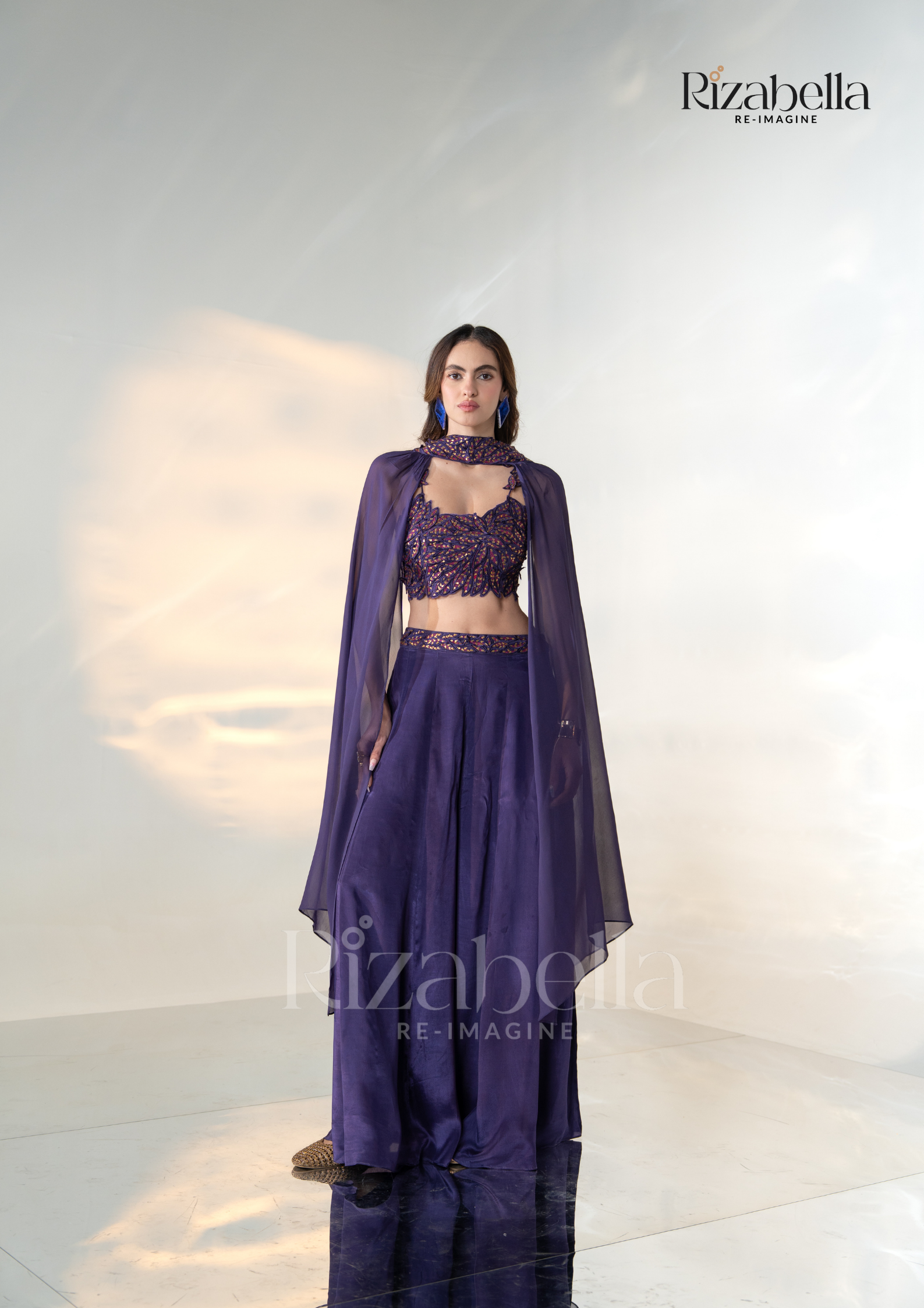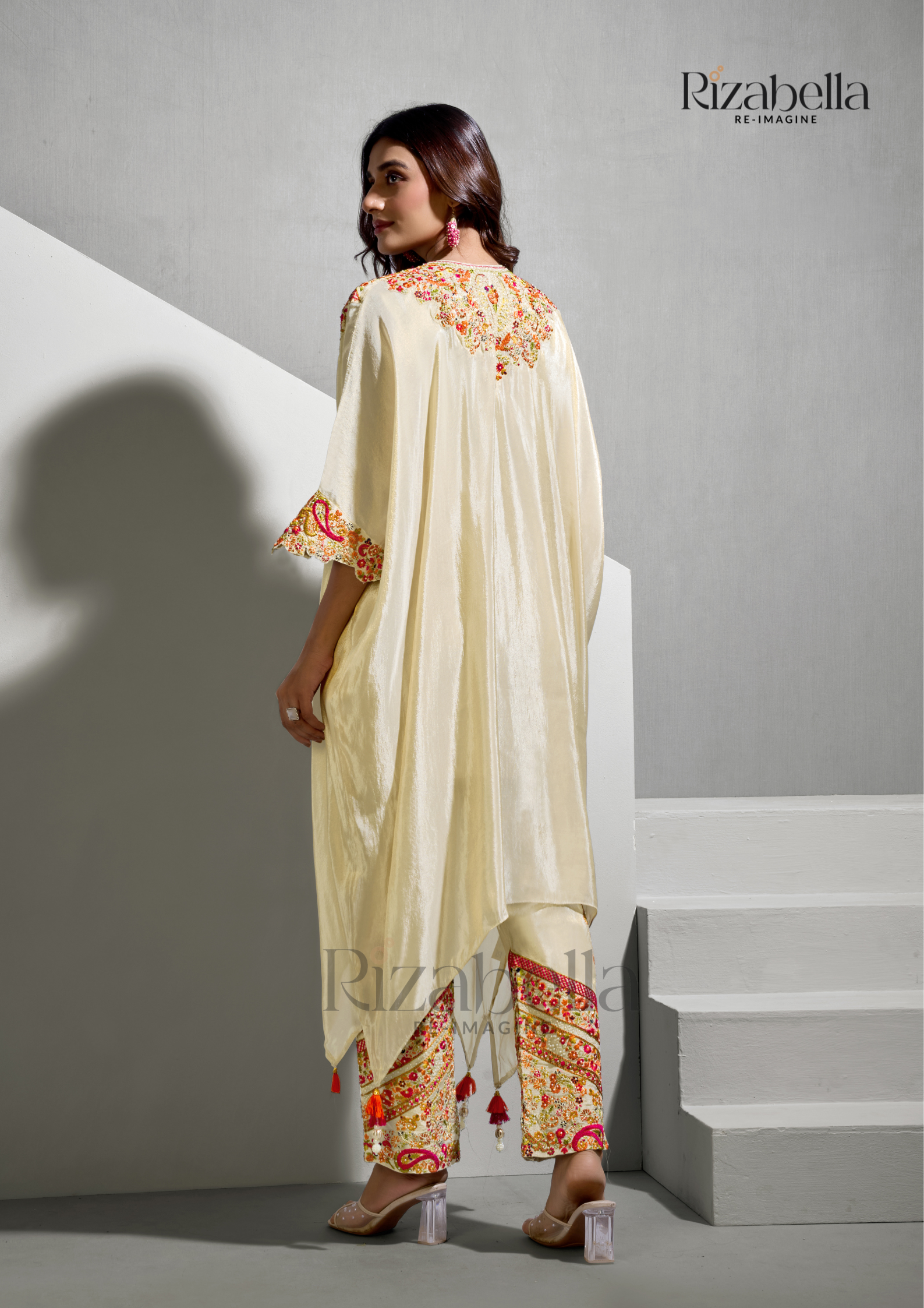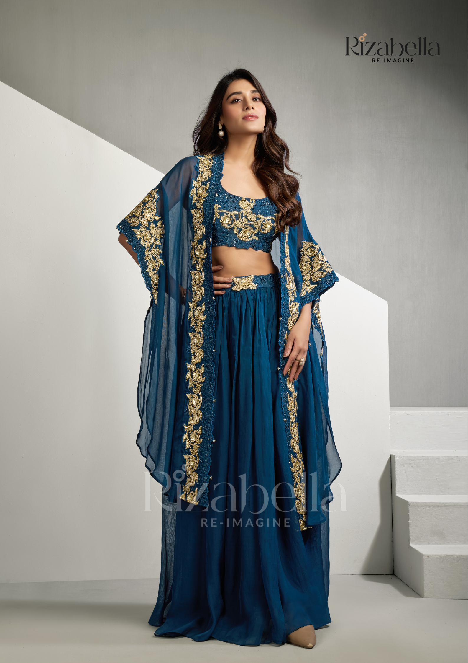 Zehra Leaf-Embroidered Cape Co-ord Set