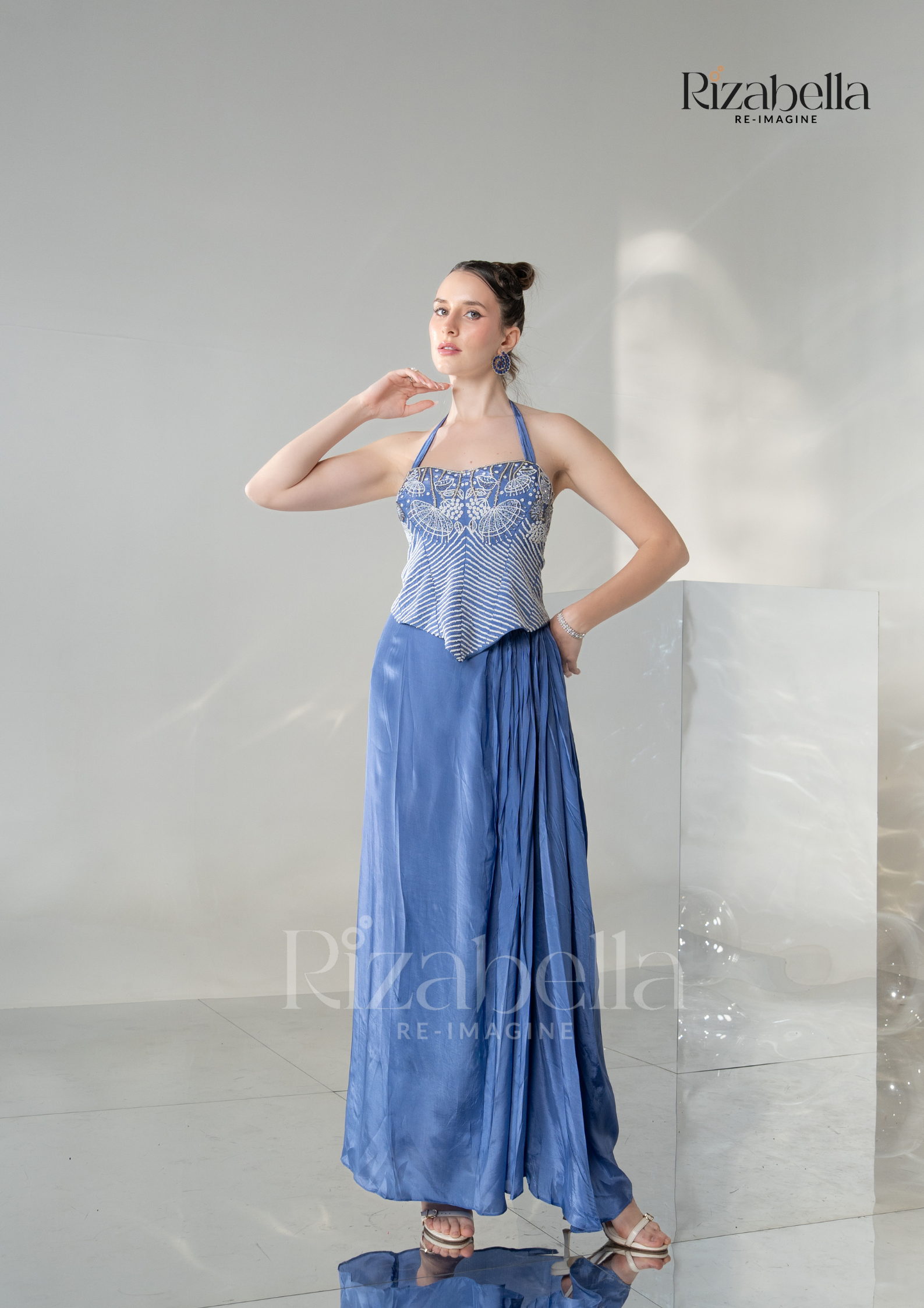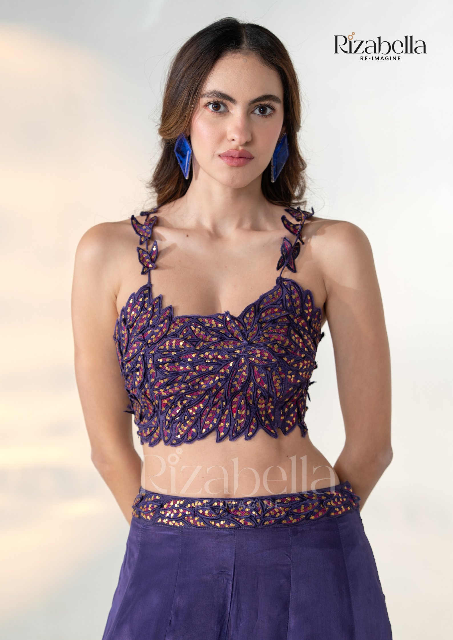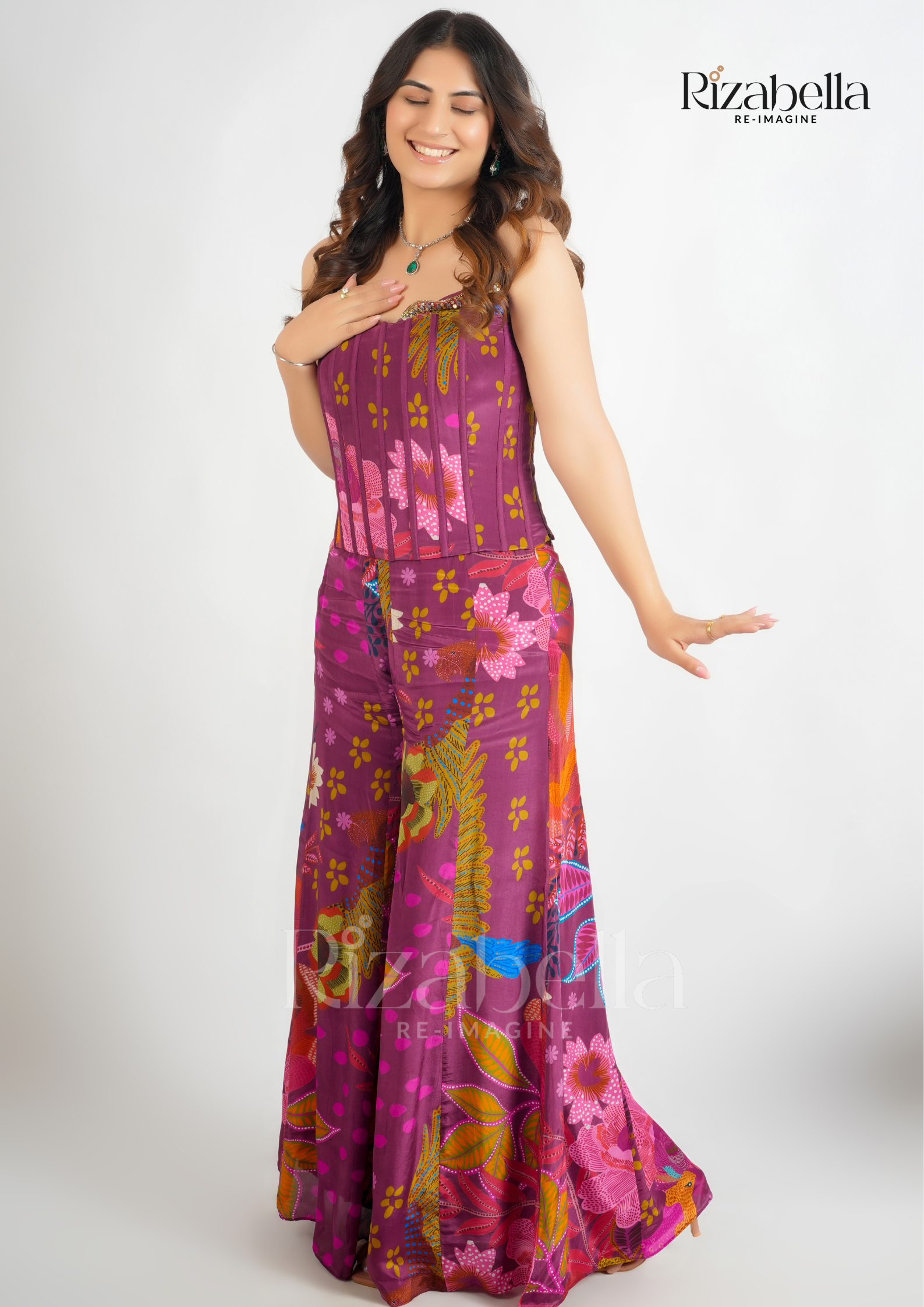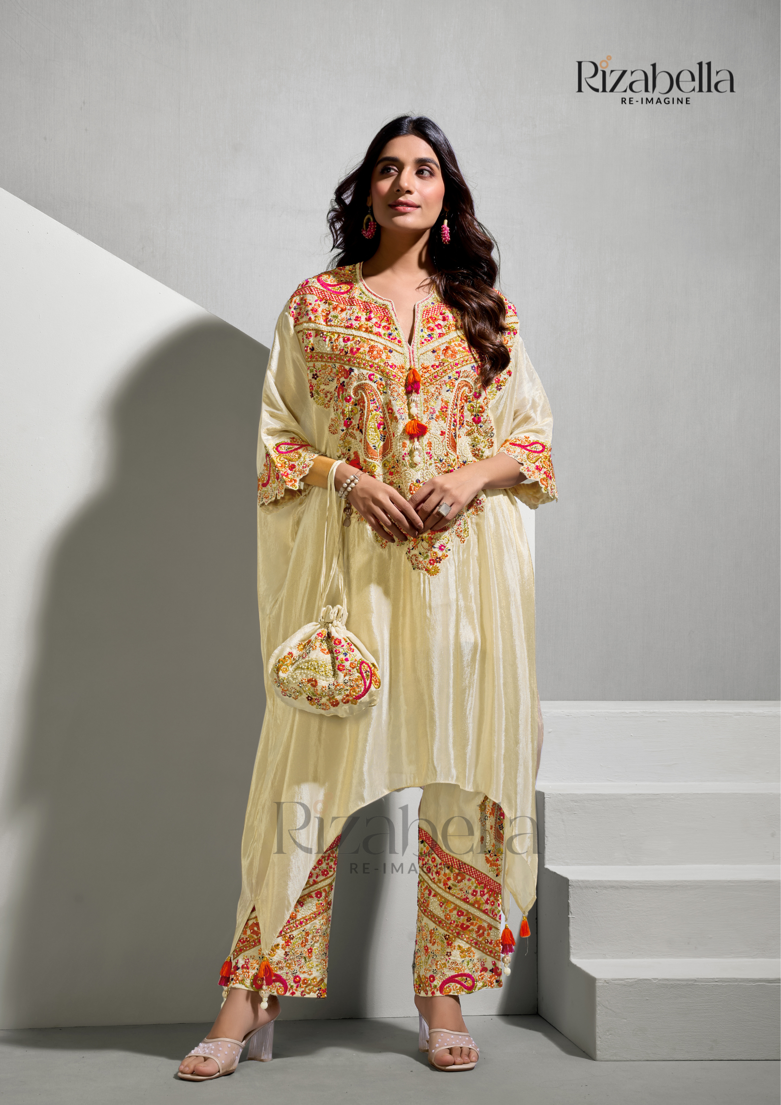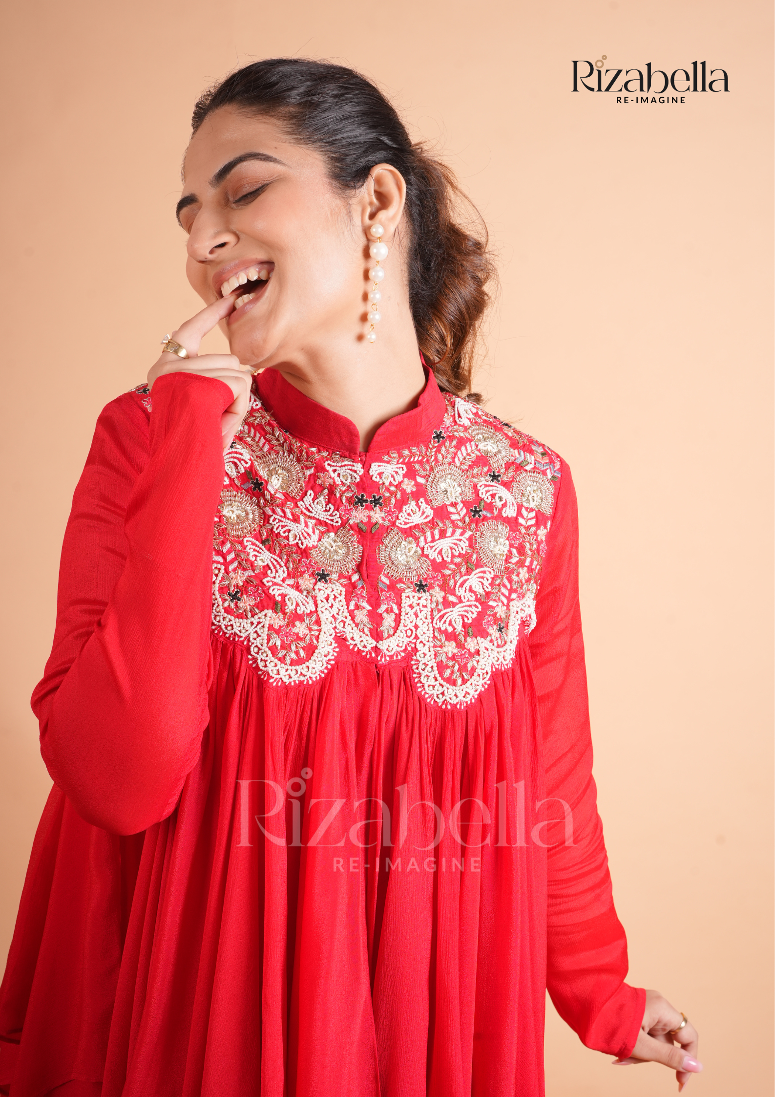 Zehra Leaf-Embroidered Cape Co-ord Set