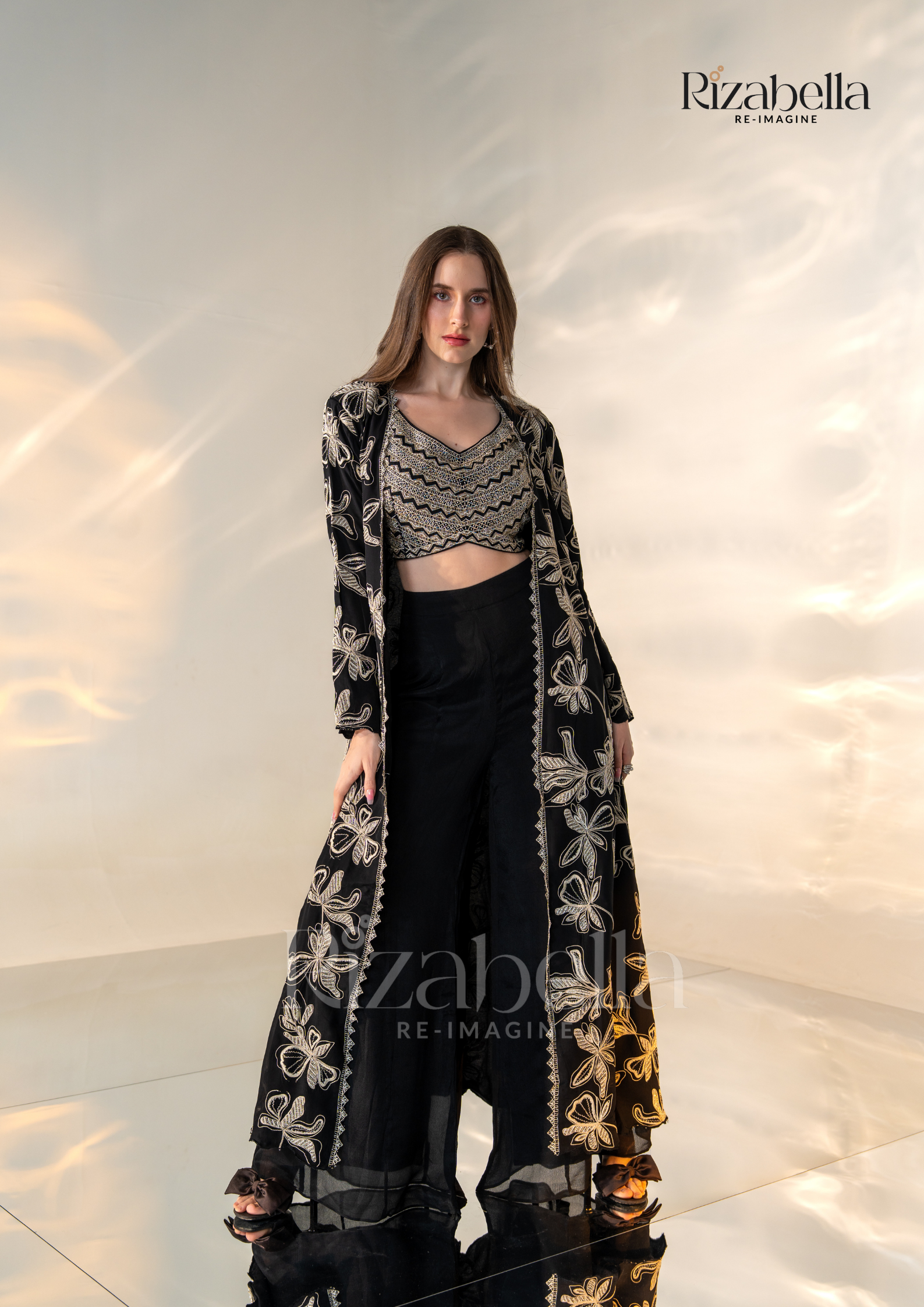 Embroidered jacket- palazzo three-piece