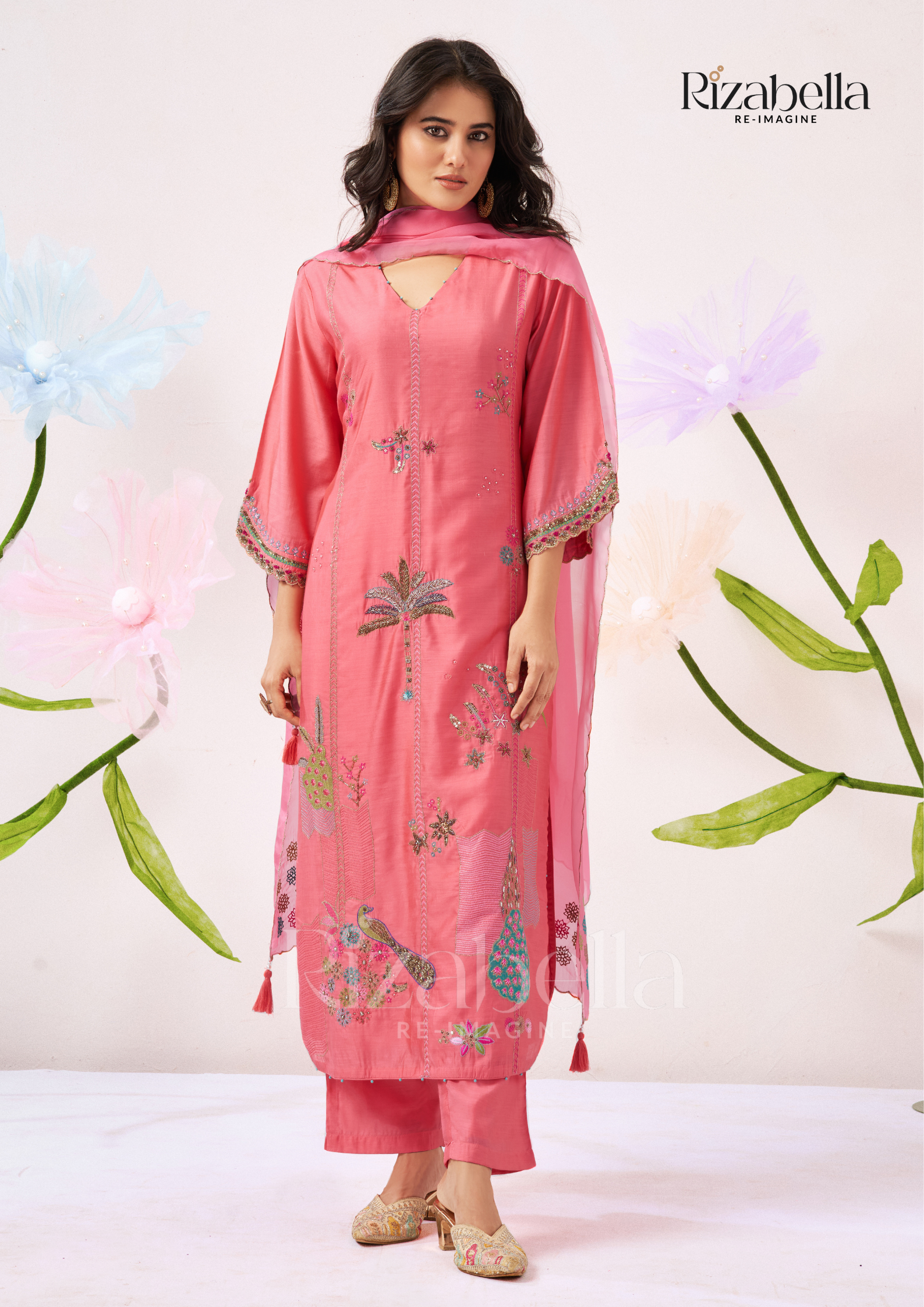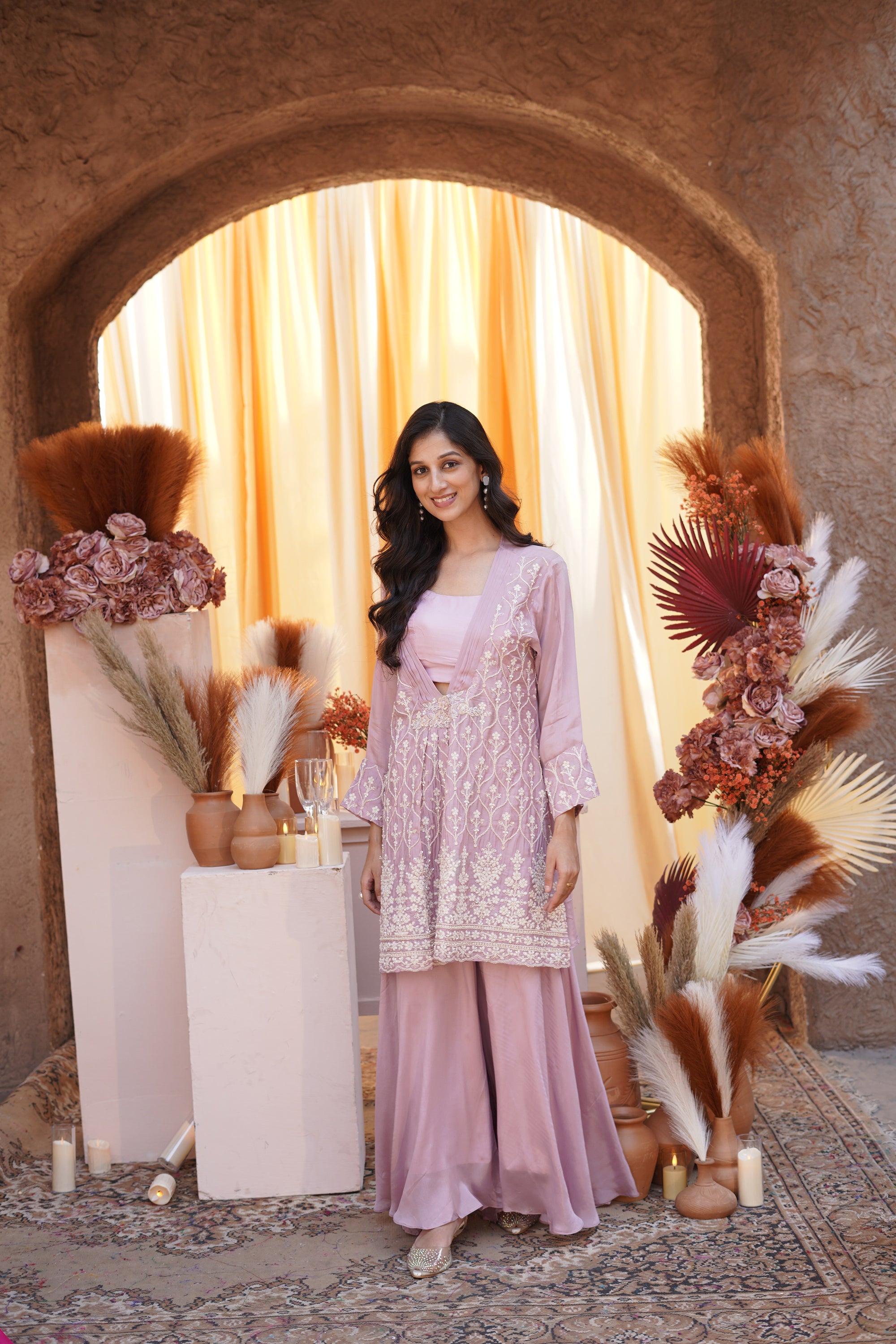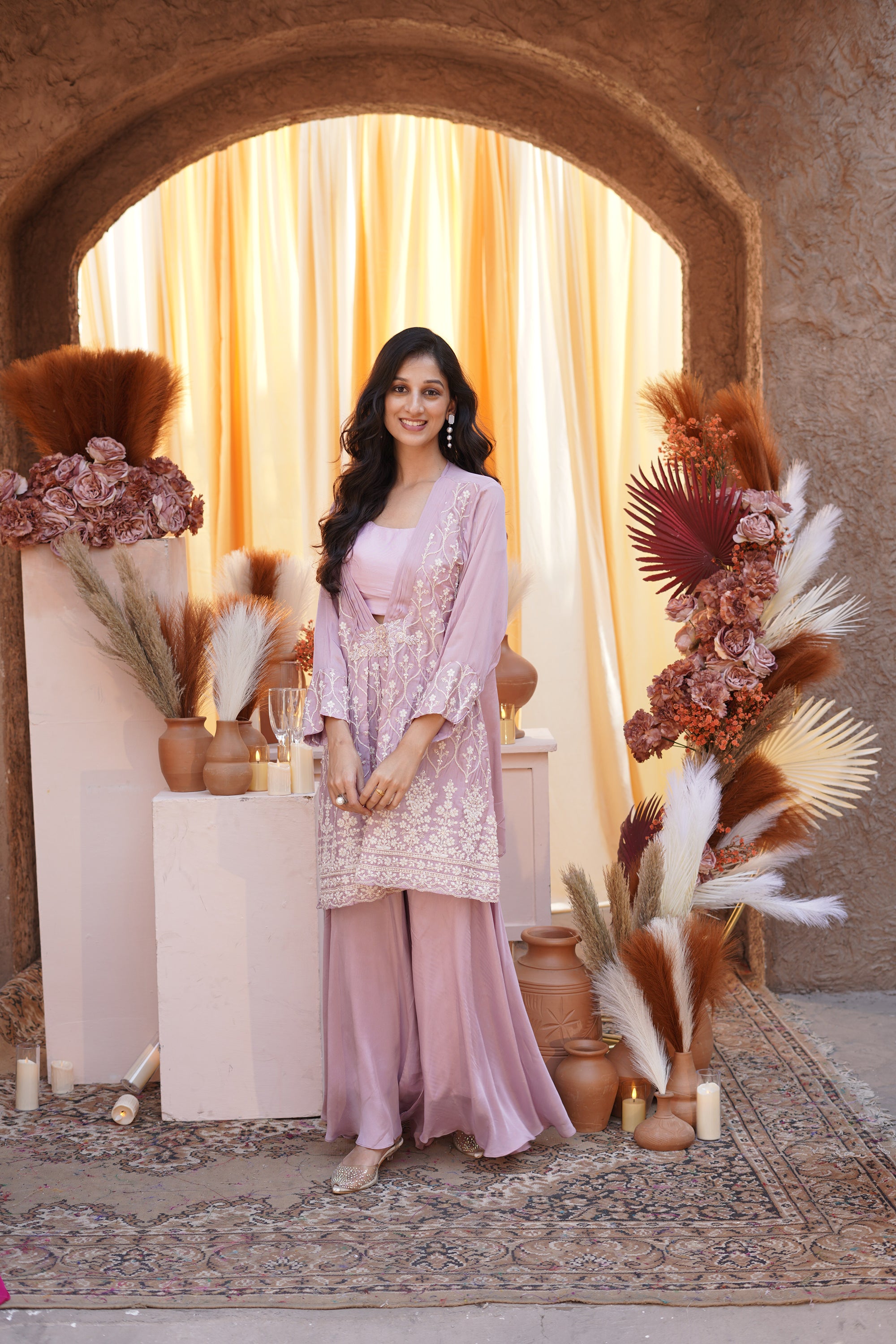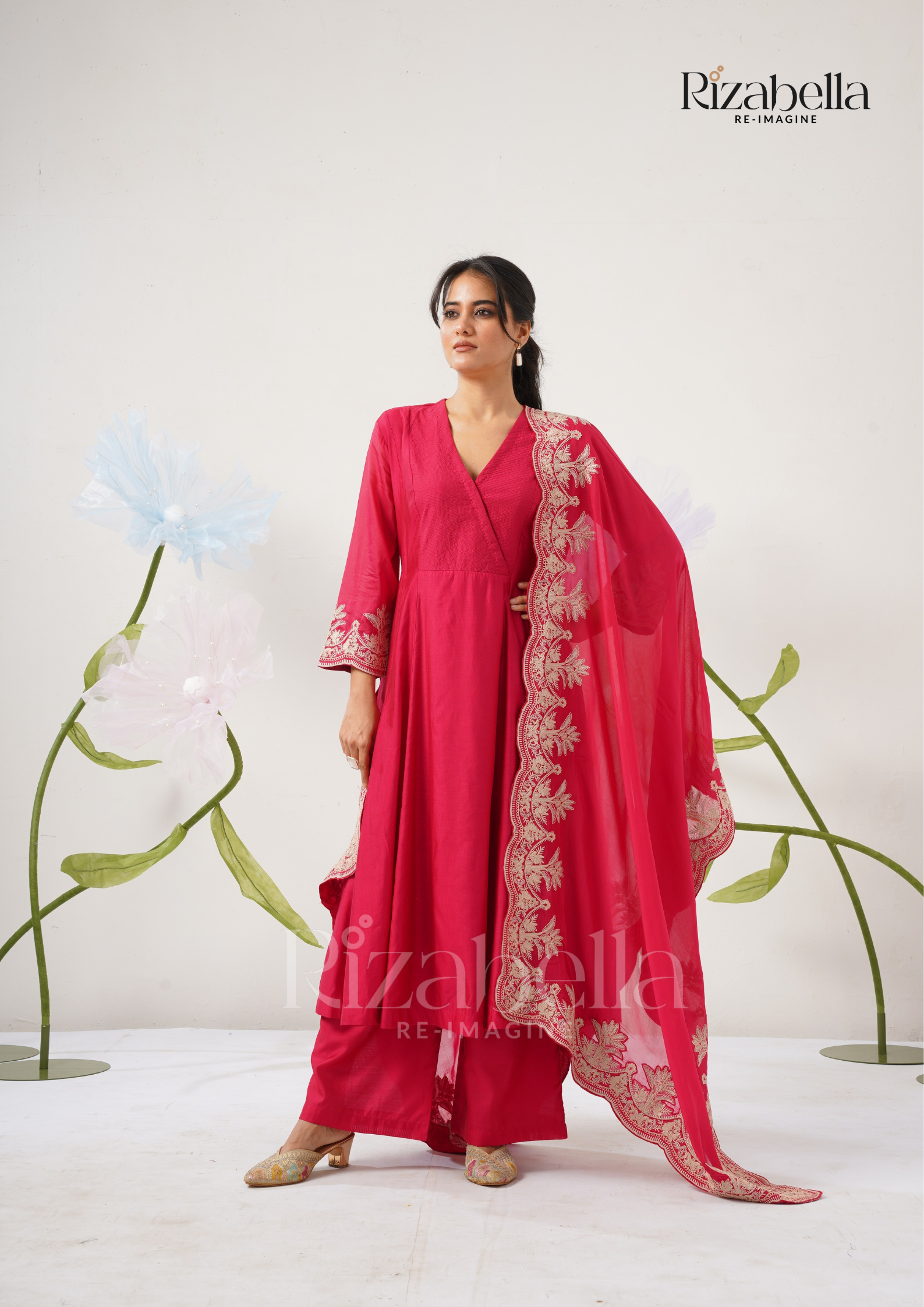 Embroidered Two-Piece Laurel Set - Vibrant Fuchsia