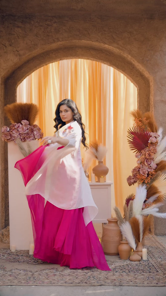 Iconic Fuchsia Draped - Ombre Embroidered Jacket Set