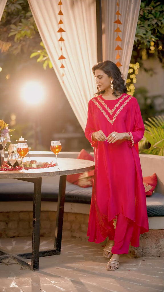 Embroidered Two-Piece Laurel Set - Vibrant Fuchsia