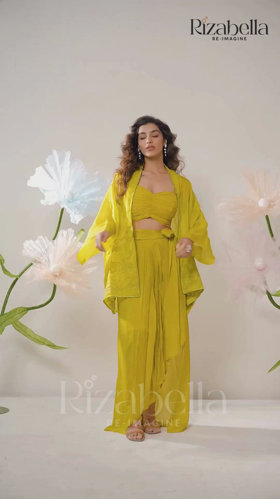 Turn heads in this vibrant co-ord set featuring a sweetheart neckline Ruched crop top, a draped high-slit drape skirt, and a sheer embroidered kimono. Effortlessly chic and breezy — perfect for resort days or summer soirées.